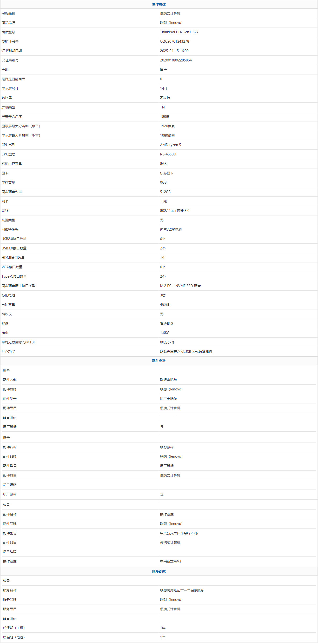 • 商品名稱:聯(lián)想(lenovo) ThinkPad L14 Gen1-527 AMD ryzen 5 R5-4650U 8GB 512GB 中興新支點(diǎn)V3 14寸 1年