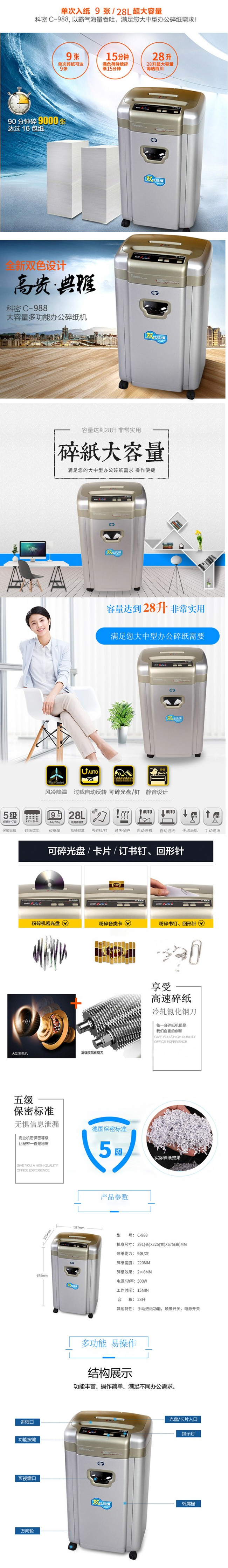 • 商品名稱:科密(comet) C-988碎紙機 辦公高保密 顆粒狀紙張粉碎機 可碎卡碎光盤
