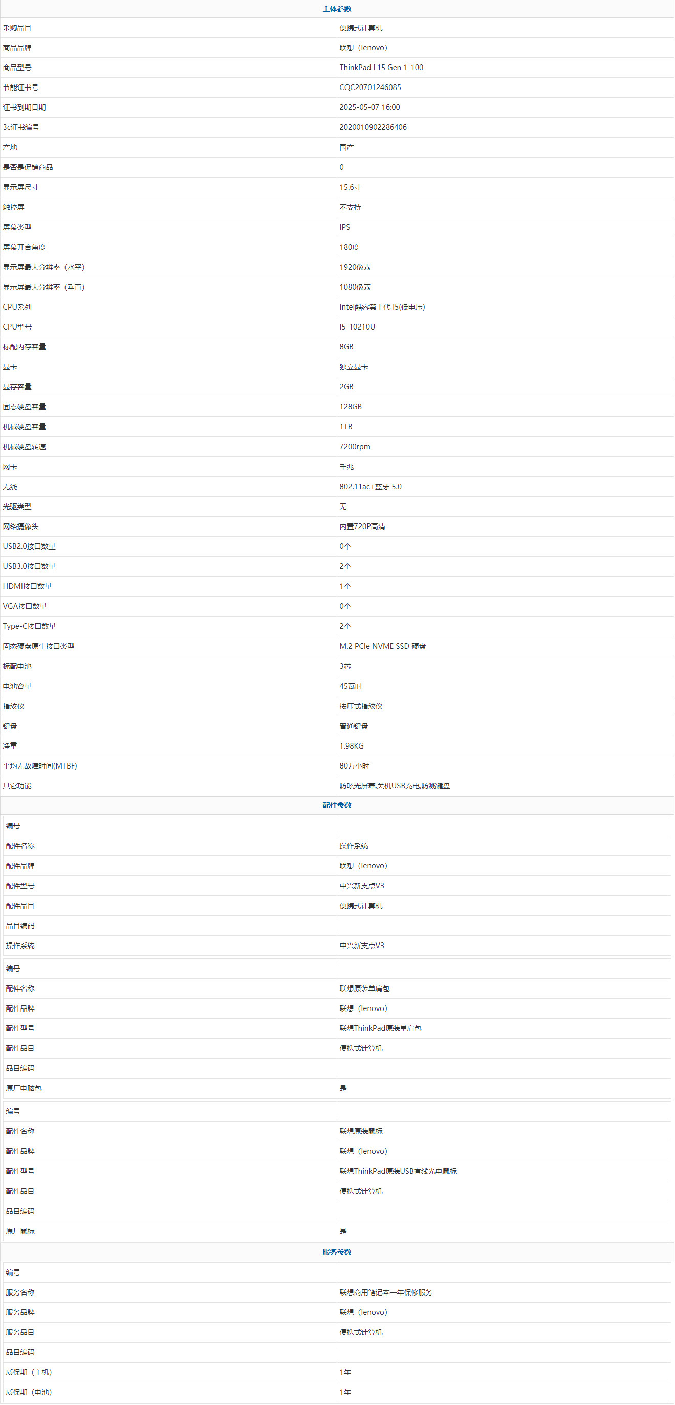 - 商品名稱:聯(lián)想(lenovo) ThinkPad L15 Gen 1-100 Intel酷睿第十代 i5(低電壓) I5-10210U 8GB 1TB 128GB 中興新支點(diǎn)V3 15.6寸 1年