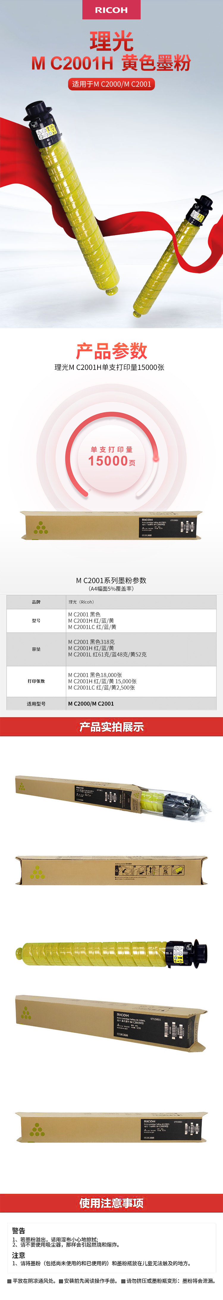 • 商品名稱:理光(RICOH)黃色墨粉盒 M C2001H型(15,000頁)