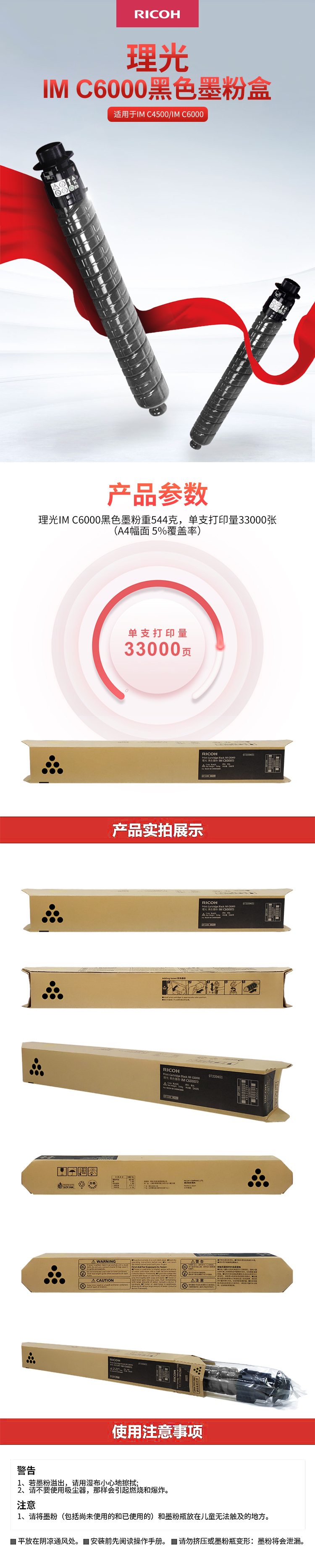 • 商品名稱:理光(RICOH)黑色墨粉盒 IM C6000型 (33,000頁)