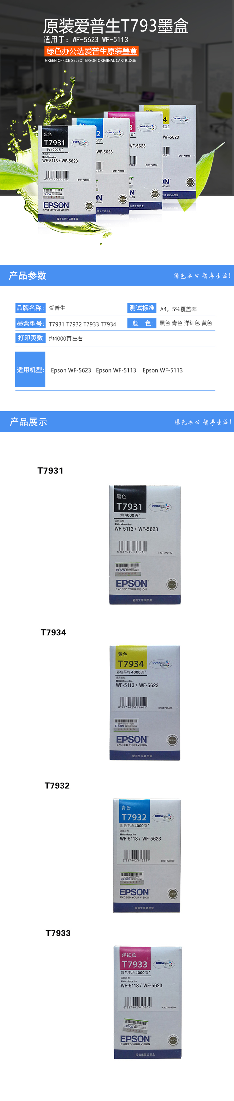 • 商品名稱:愛普生(EPSON)T7934黃色墨盒 (適用WF-5113/5623機型)