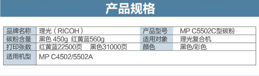 • 商品名稱(chēng):理光(RICOH)MPC5502C型黃色碳粉盒 印量約22500頁(yè)