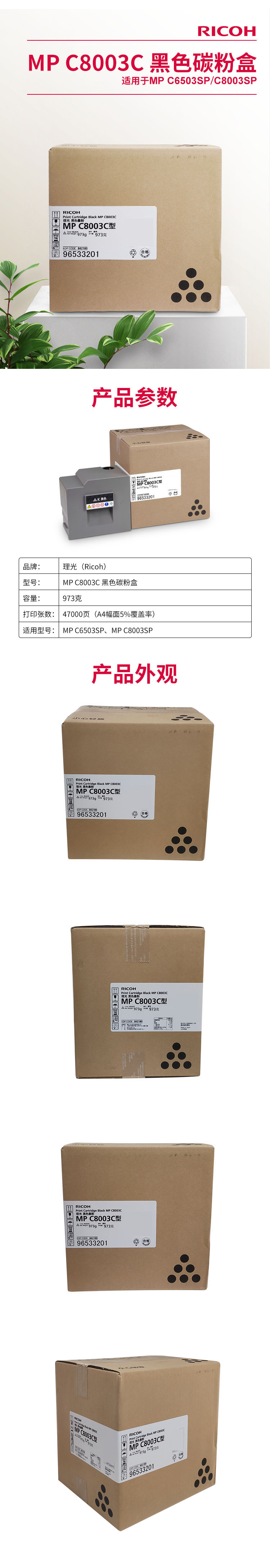 • 商品名稱:理光(RICOH)MPC8003C型黑色碳粉盒 印量約47000頁