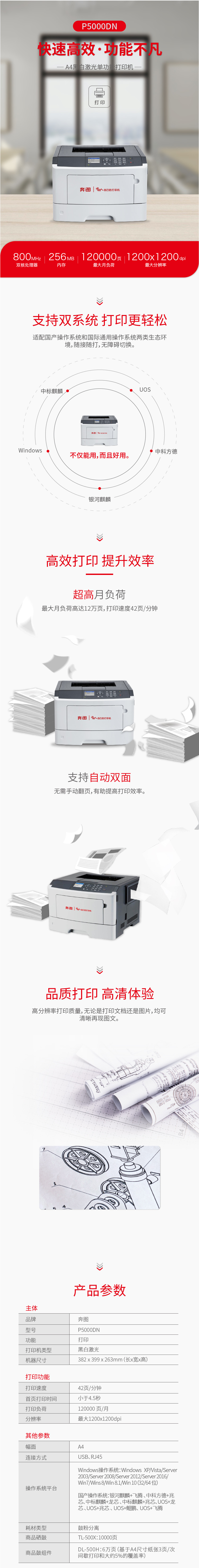 • 商品名稱:奔圖(PANTUM)P5000DN A4黑白激光單功能打印機(jī)/高效打印/快速高效/支持雙系統(tǒng)K