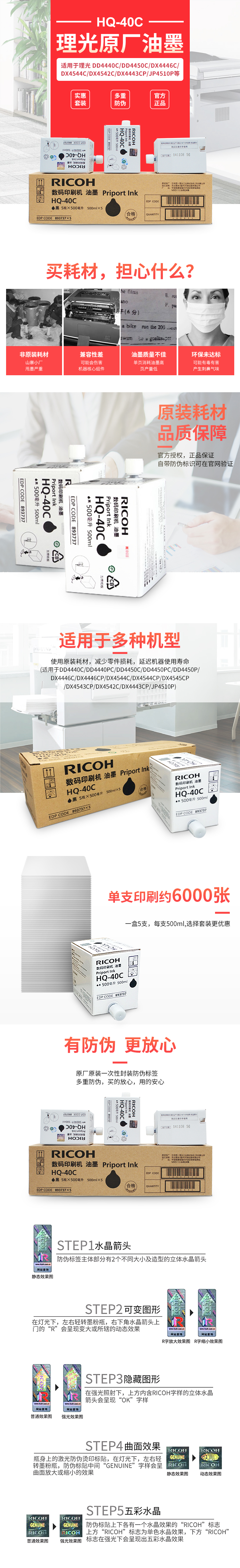 • 商品名稱:理光(RICOH)黑油墨HQ-40C(500cc/瓶) 適用于DD 4440C/DD 4440PC/DD 4450C/DD 4450PC/DD 4450P