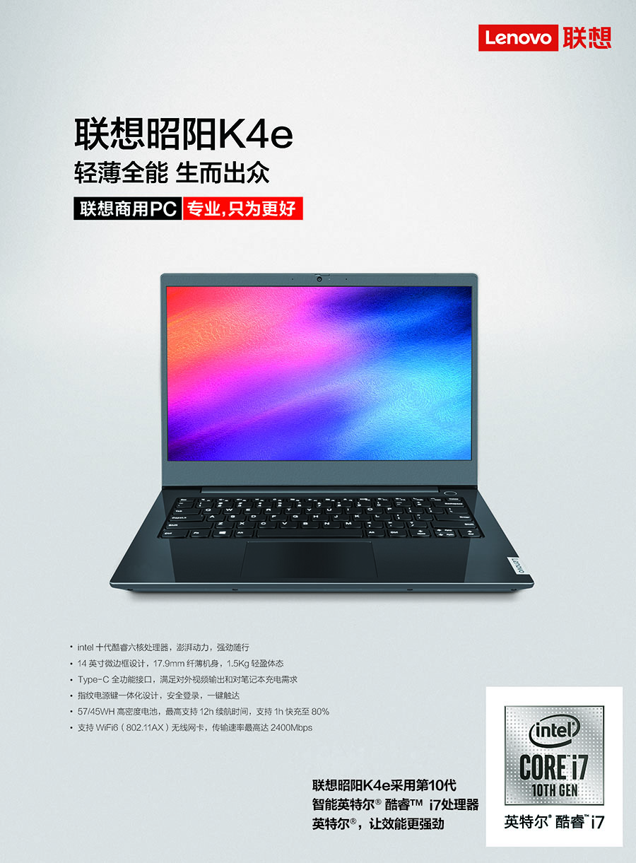 聯(lián)想(Lenovo)昭陽K4e-IML279便攜式計算機 i5-10210U/8G+256G/中興新支點/集成/14寸