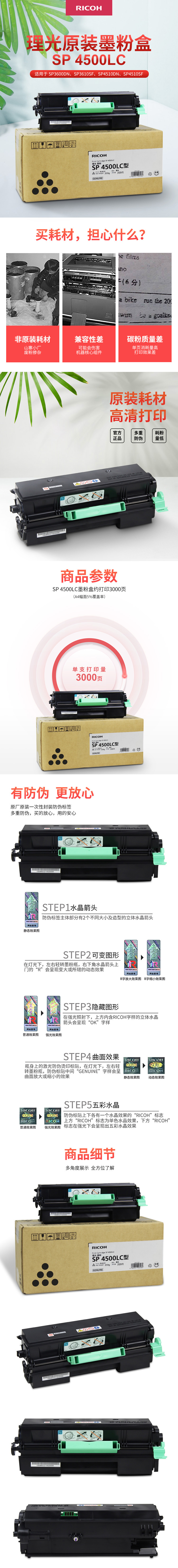 • 商品名稱:理光(RICOH)黑色墨粉盒SP 4500LC型(3,000頁)