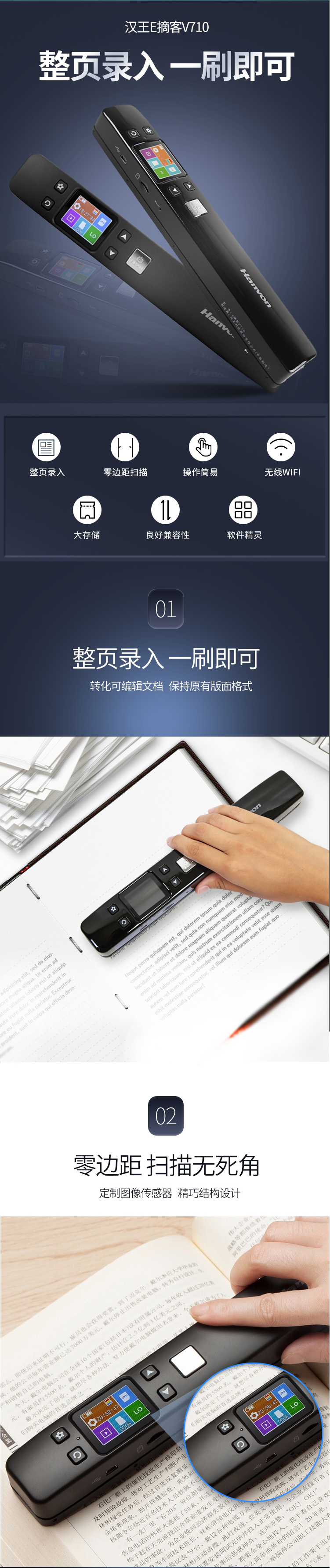 漢王(Hanvon)V710 便攜式掃描儀 A4幅面 手持整頁掃描 WiFi互聯(lián)