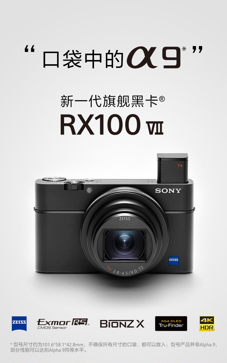 索尼(SONY)DSC-RX100M7 黑卡數(shù)碼相機 實時眼部對焦 4K HDR視頻 含24-200mm蔡司鏡頭