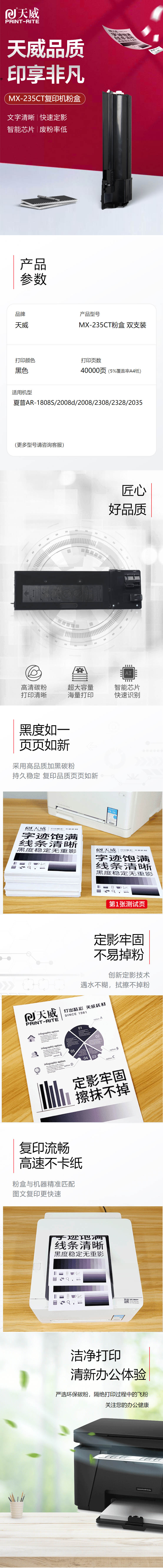 天威 MX-235CT 復印機粉盒帶芯片經典裝 15000頁 黑色 適用于夏普AR 1808S/2008d/2008/2308/2328/2035