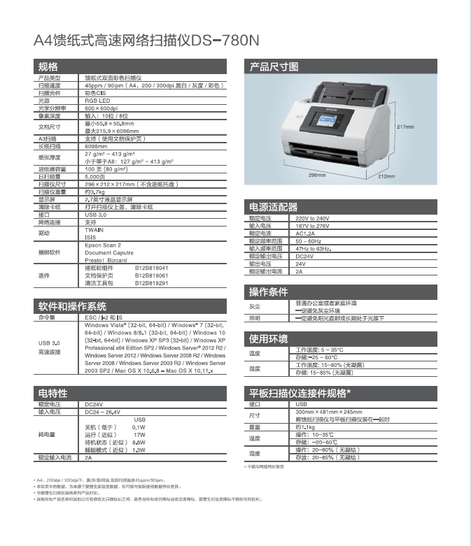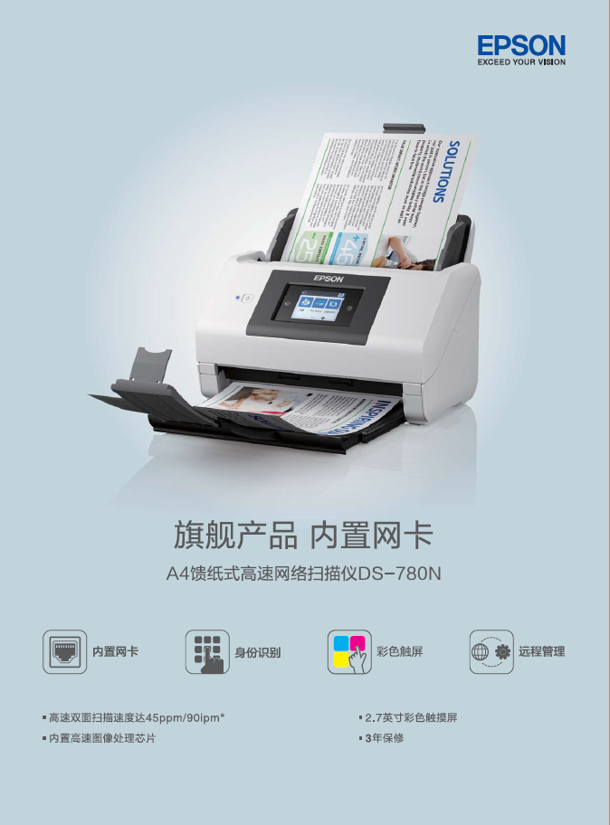 - 商品名稱:愛(ài)普生 DS-780N 饋紙式高速彩色文檔掃描儀 A4