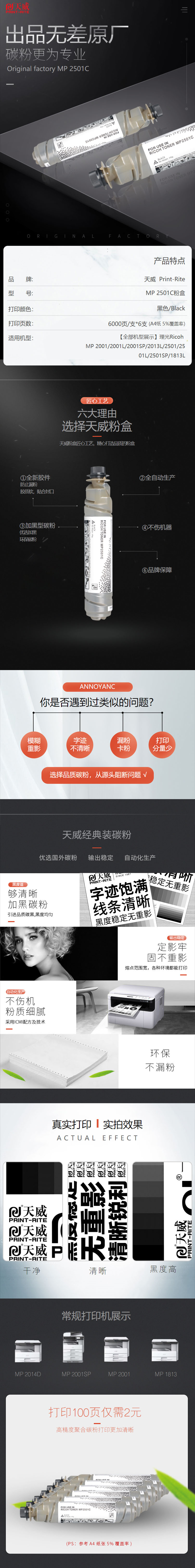 天威 MP2501C 復(fù)印機(jī)粉盒六支裝經(jīng)典裝 6000頁*6支裝 黑色 適用于理光Ricoh MP1813/2001/2013/2501/1813L/2001L/2013L/2501L