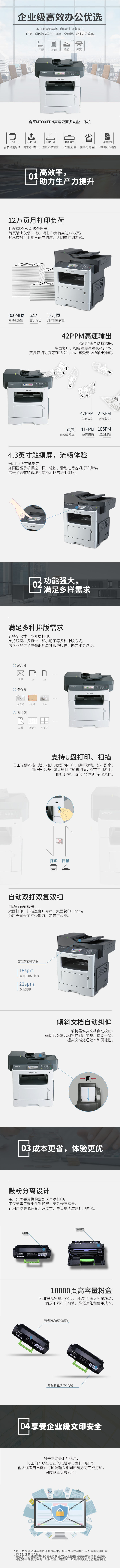 • 商品名稱:奔圖(PANTUM) M7600FDN黑白多功能一體機 A4幅面 打印復印掃描 適用耗材:硒鼓TL-500H/鼓組件DL-500H