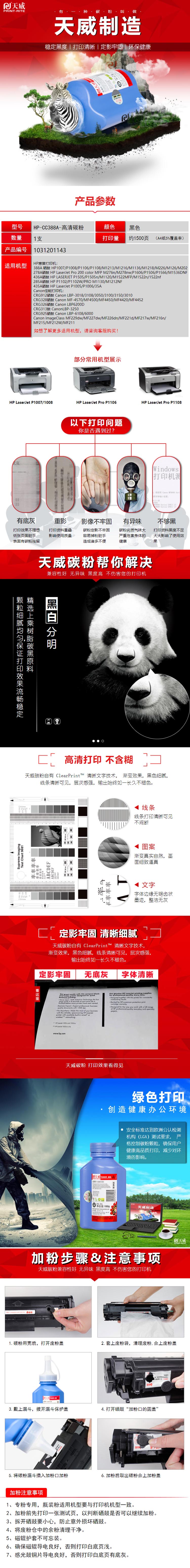 天威 HP388A/435A/436A 碳粉加黑碳粉手提版專業(yè)裝(TJH377BPRJ4) 70g 黑色 適用于HP LaserJet P1007/1008HP LaserJet P1005/P1006