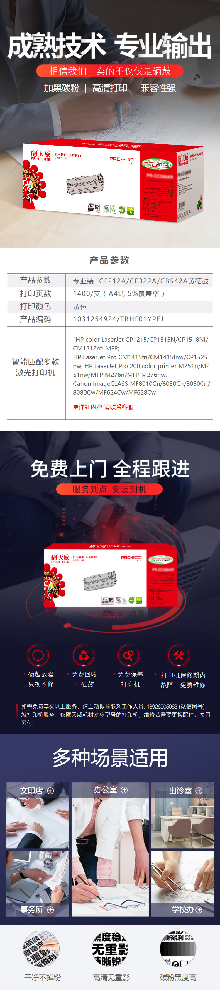 天威 CB542A 硒鼓帶芯片商用裝(TRH827YPSYJ) 1400頁 黃色 / 適用于HP Color LaserJet CP1210/CP1215/CP1510/CP1515/CP1518/CM1312MFP Canon Laser Shot LBP5050/5050n, Canon MF8040/MF8050