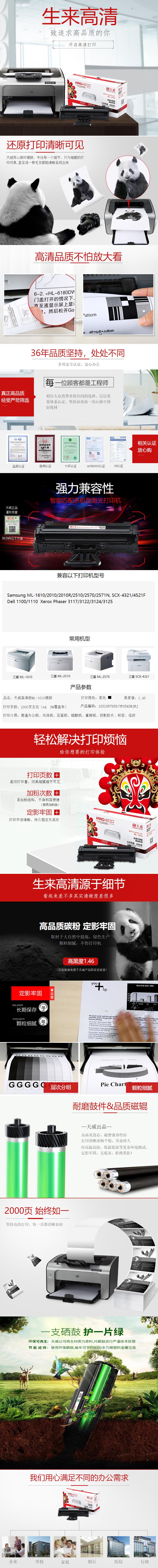 天威 ML1610 硒鼓商用裝(TFS394BPSYJ) 2000頁 黑色 / 適用于Samsung ML-1610/2010/2010R/2010P/2510/2570/2571N,SCX-4321/4521F, Dell 1100/1110, Xerox phaser 3117/3122/3124/3125