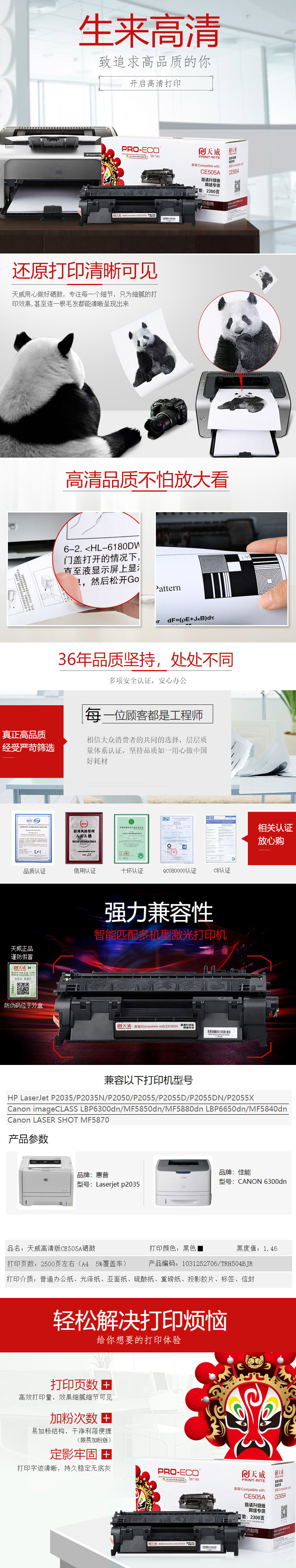 天威 CE505A 硒鼓帶芯片商用裝(TRH746BPSYJ) 2500頁 黑色 / 適用于HP LaserJet P2035/2050/2055