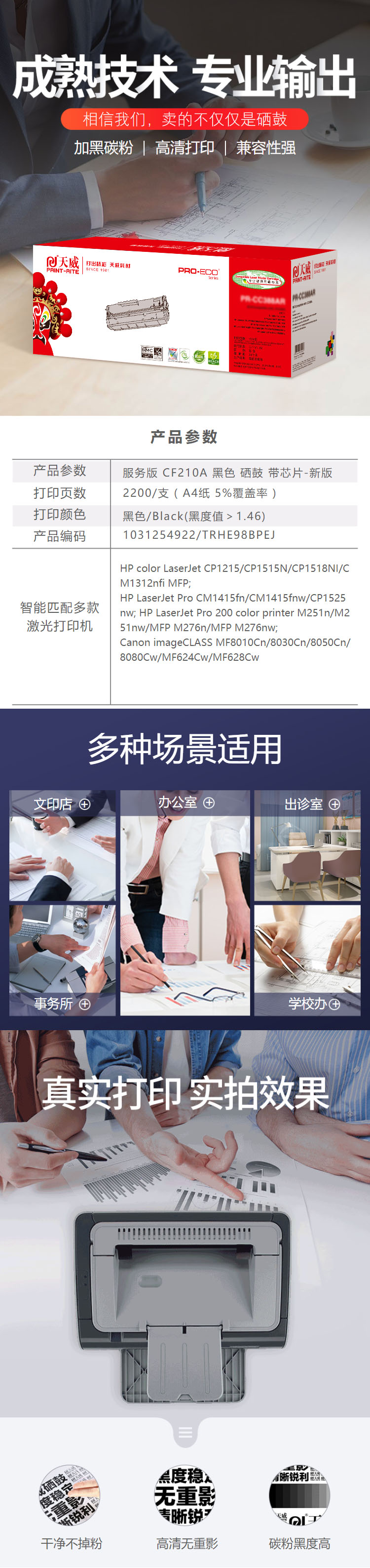 天威 CF210A/CE320A/CB540A 硒鼓帶芯片-新版專業(yè)裝(TRHE98BPEJ) 2200頁 黑色 / 適用于HP color LaserJet CP1215/CP1515N/CP1518NI/CM1312nfi MFP; HP LaserJet Pro CM1415fn/CM1415fnw/CP1525nw; HP LaserJet Pro 200 color printer M