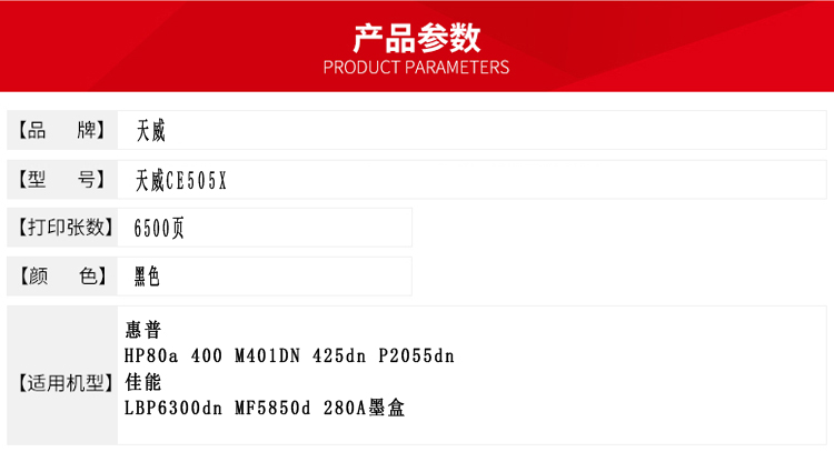 - 商品名稱:天威 CE505X 硒鼓帶芯片-新版專業(yè)裝(TFH049BPEJ) 6500頁 黑色 / 適用于HP LaserJet P2050 series/P2055/P2055A/P2055dn/P2055x, Canon i-SENSYS LBP6680x/MF5840dn/MF5880dn/LBP6650dn/LBP6300dn/MF5940dn/MF5980dw/LBP6670dn/ LBP631
