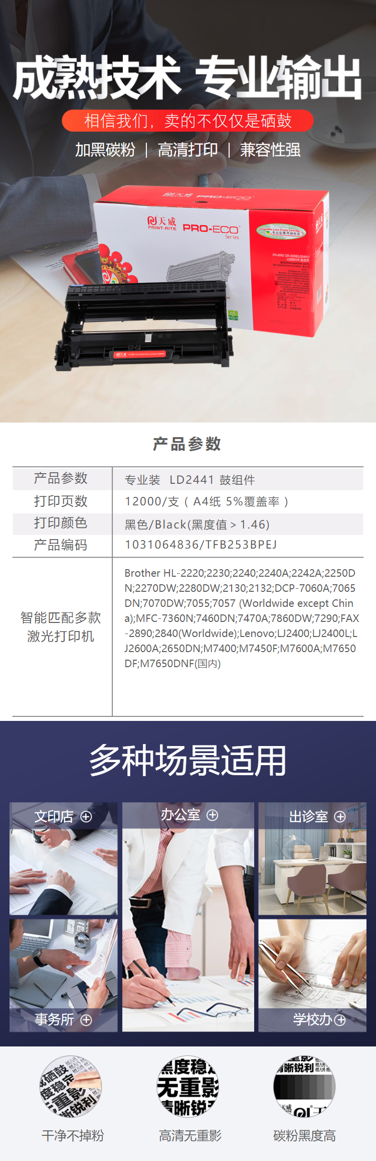 天威 DR2250 鼓組件專業(yè)裝(TFB253BPEJ) 12000頁 黑色 / 適用于Brother HL-2220/2230/2240/2240A/2242A/2250DN/2270DW/2280DW,DCP-7060A/7065DN/7070DW, MFC-7360N/7460DN/7470A/7860DW/7290 ,FAX-2890/2840(Worldwide), Brother H