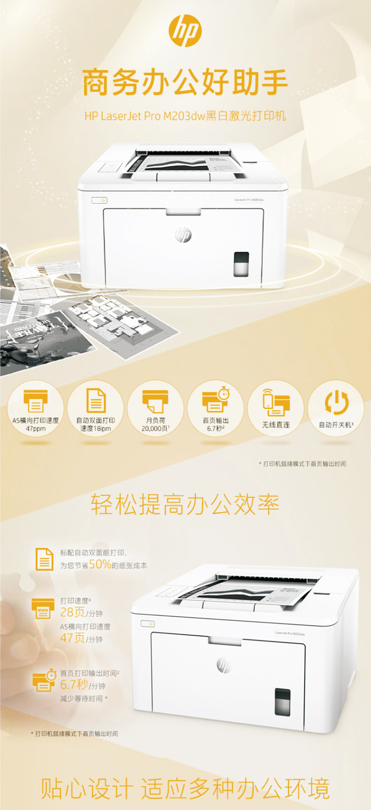• 商品名稱:惠普(HP)LaserJet Pro M203dw A4黑白激光打印機