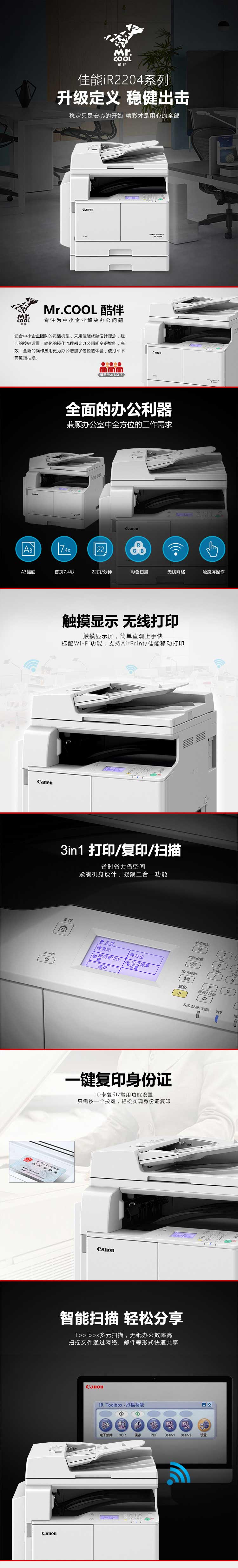 - 商品名稱:佳能(Canon) imageRUNNER 2204N A3黑白激光數(shù)碼復印機 無線網(wǎng)絡打印 約22頁/分鐘 適用耗材:NPG-59