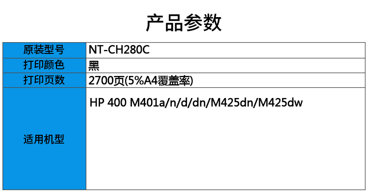- 商品名稱:格之格NT-CH280C黑色硒鼓粉盒 約2700頁(yè) 適用HP400/M401/M425系列機(jī)型