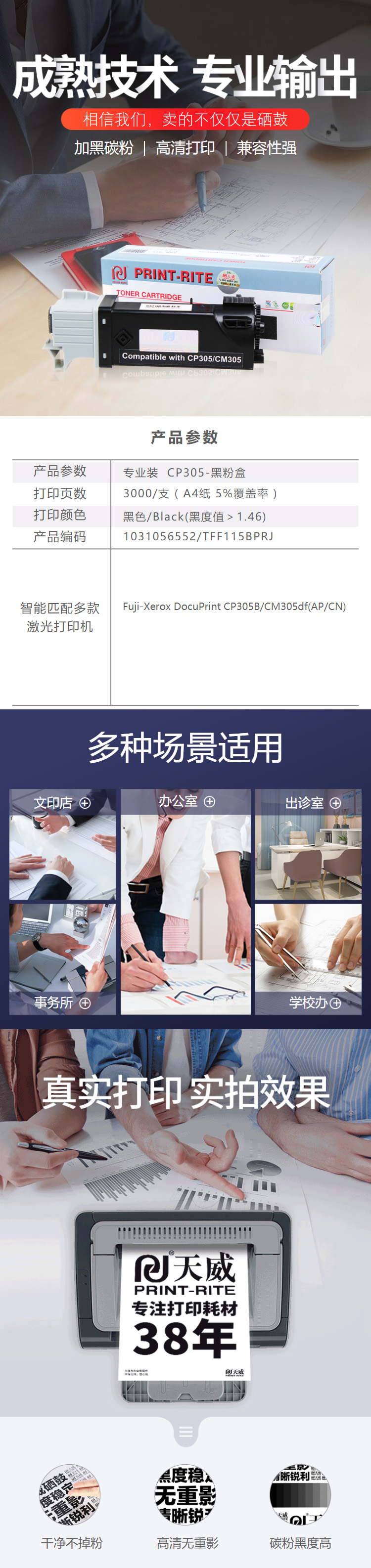 天威 CP305 粉盒帶芯片專業(yè)裝(TFF115BPRJ) 3000頁 黑色 / 適用于Fuji-Xerox DocuPrint CP305B/CM305df(AP/CN)
