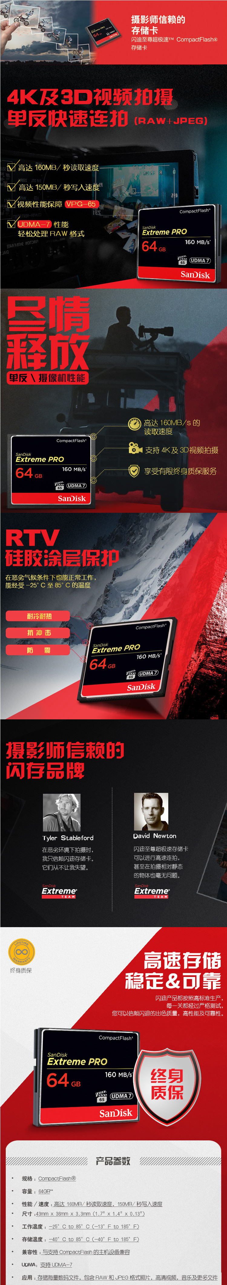 - 商品名稱:閃迪(SanDisk)64GB CF(CompactFlash)存儲卡 高級單反相機(jī)內(nèi)存卡 UDMA7 4K 至尊超極速版 讀速160MB/s
