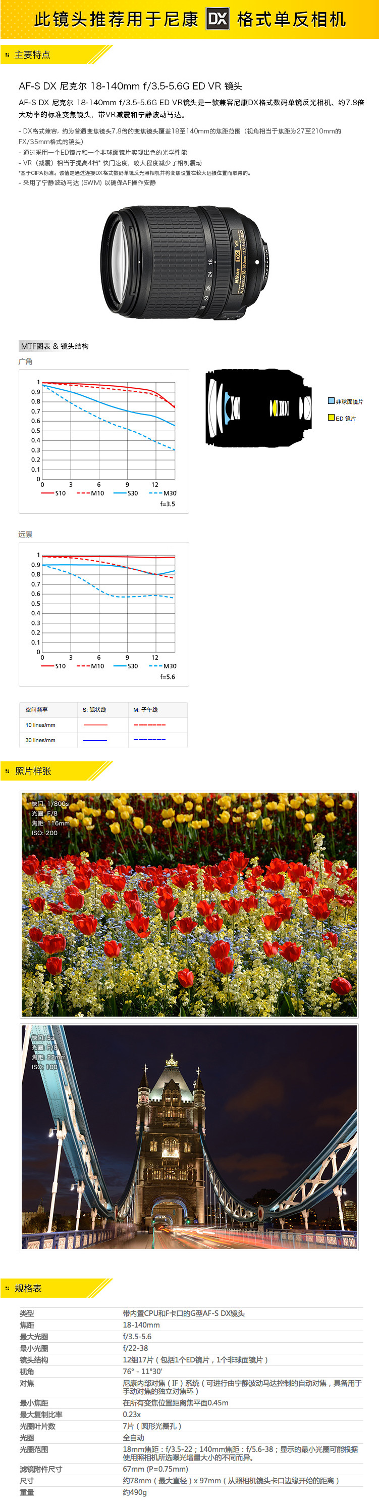 - 型號(hào):18-140mm f/3.5-5.6G ED VR