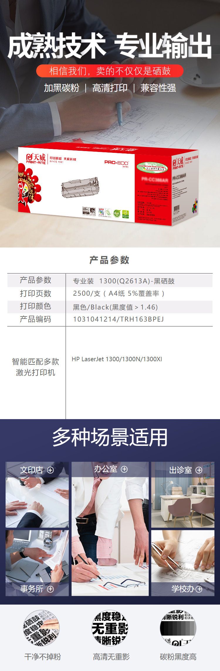 天威 Q2613A 硒鼓專業(yè)裝(TRH163BPEJ) 2500頁 黑色 / 適用于HP LaserJet 1300/1300N/1300XI