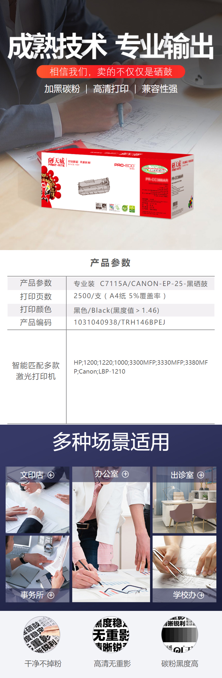 天威 C7115A/EP-25 硒鼓專業(yè)裝(TRH146BPEJ) 2500頁(yè) 黑色 / 適用于HP LaserJet 1200/1220/1000/3300MFP/3330MFP/3380MFP Canon LBP-1210