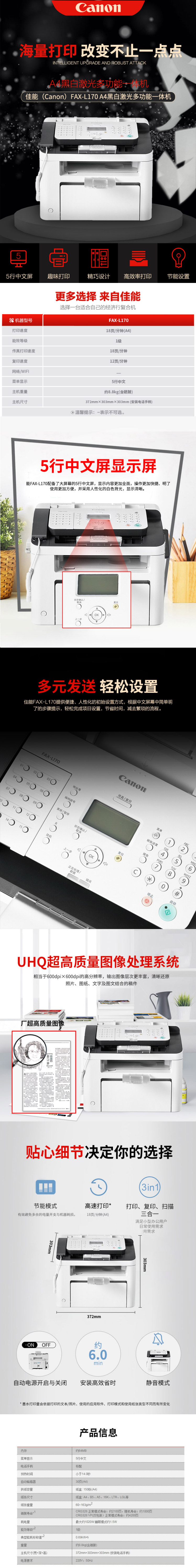 • 商品名稱:佳能(Canon)FAX-L170 A4激光多功能一體機(jī)