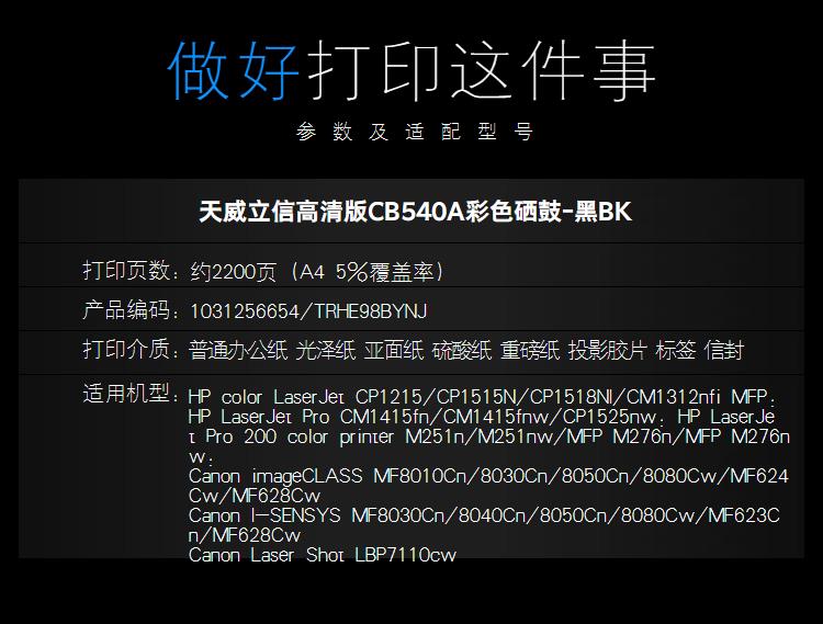 立信 CB540A 硒鼓帶芯片天威立信(TRHE98BYNJ) 2200頁 黑色 / 適用于HP color LaserJet CP1215/CP1515N/CP1518NI/CM1312nfi MFP; HP LaserJet Pro CM1415fn/CM1415fnw/CP1525nw; HP LaserJet Pro 200 color printer M251n/M251nw/MFP