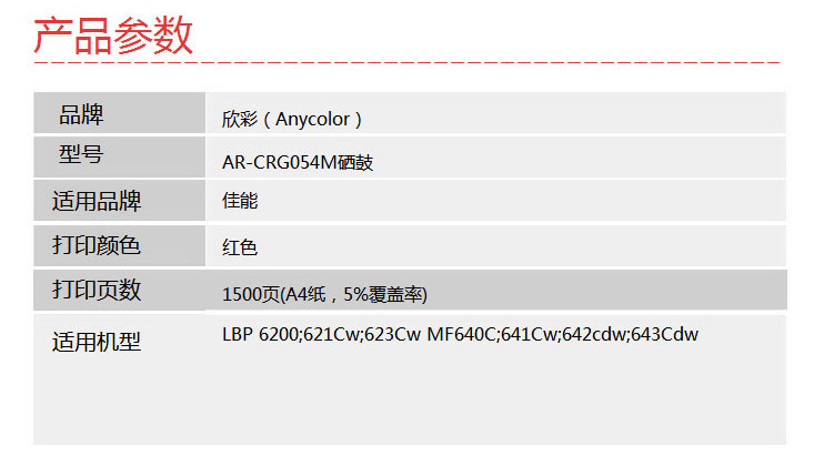 • 商品名稱:欣彩 AR-CRG054M紅色硒鼓 約1500頁 適用佳能LBP 6200 621Cw 623Cw MF640C 641Cw 642cdw 643Cdw