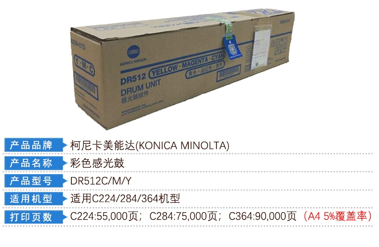 - 商品名稱:柯尼卡美能達(dá)(KONICA MINOLTA) DR512C 感光鼓 藍(lán)色 適用柯美C224/284/364
