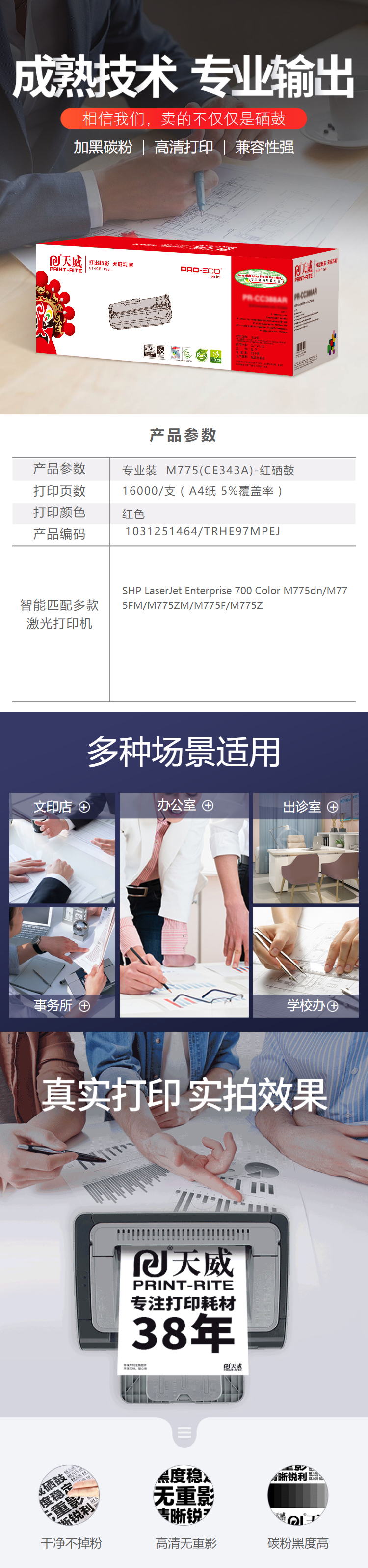 天威 M775 硒鼓帶芯片專業(yè)裝(TRHE97MPEJ) 16000頁 洋紅色 / 適用于HP LaserJet Enterprise 700 color MFP M775dn/M775f/M775z/M775z+