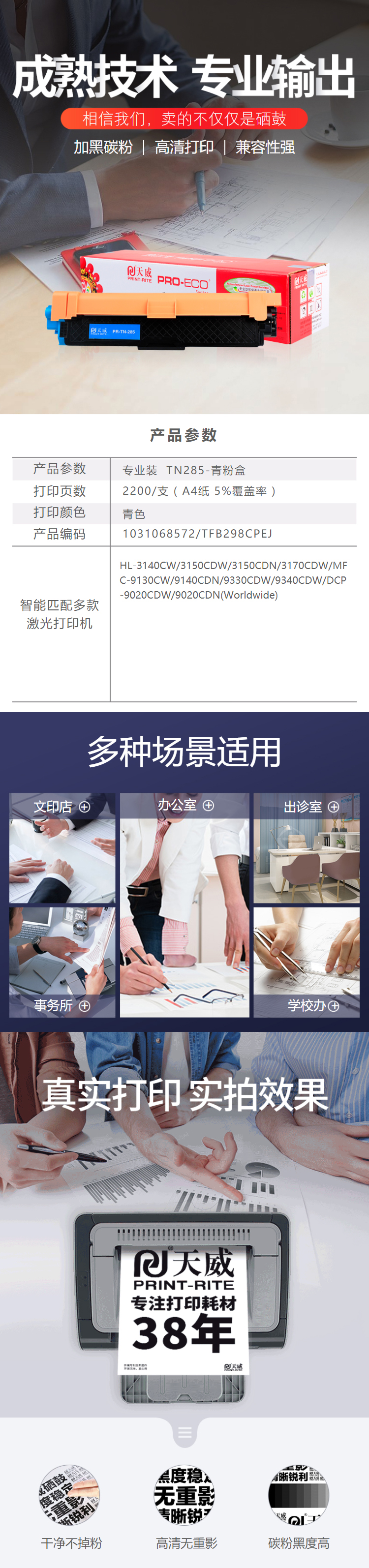 天威 TN285 硒鼓專業(yè)裝(TFB298CPEJ) 2200頁 青色 / 適用于Brother HL-3140CW/3150CDW/3150CDN/3170CDW, MFC-9130CW/9140CDN/ 9330CDW/9340CDW, DCP-9020CDW/9020CDN (Worldwide)