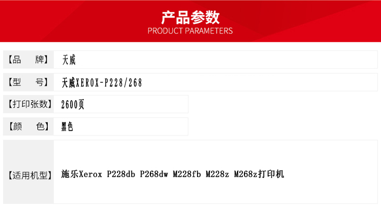 • 商品名稱(chēng):天威 P228/268 粉盒專(zhuān)業(yè)裝(TFF165BPEJ) 2600頁(yè) 黑色 / 適用于Fuji Xerox DocuPrint P228db/P268b/P268B/P268dw/ M228b/M228db/M228fb/M228z/M268dw/M268z