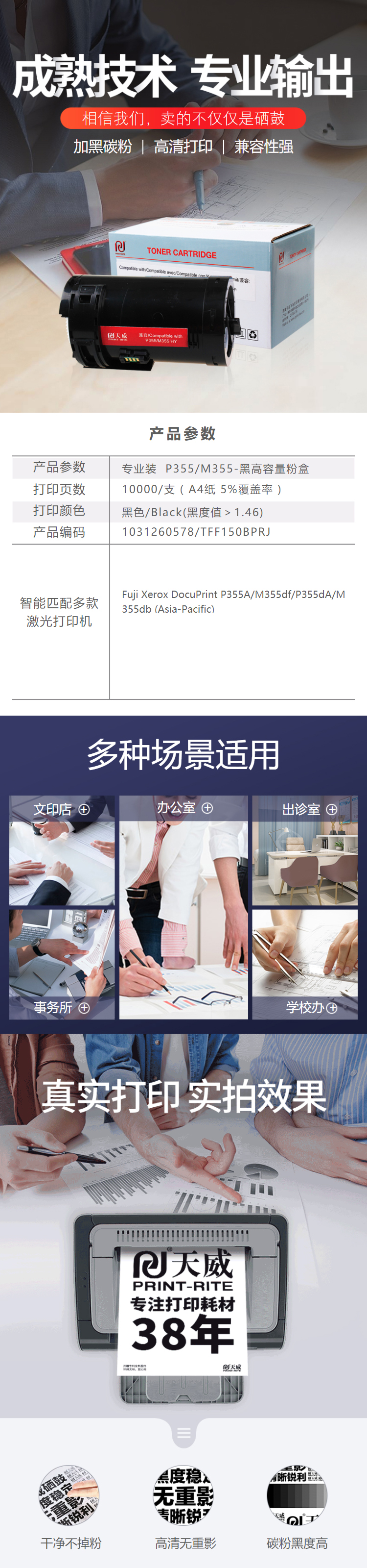 天威 P355/M355 粉盒帶芯片專業(yè)裝(TFF150BPRJ) 10000頁 黑色 / 適用于Fuji Xerox DocuPrint P355A/M355df/P355dA/M355db (Asia-Pacific)