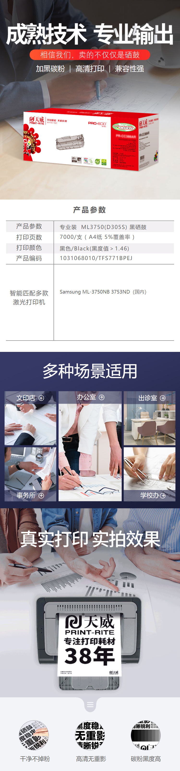 天威 D305S 硒鼓帶芯片專業(yè)裝(TFS771BPEJ) 7000頁 黑色 / 適用于Samsung ML-3750NB/3753ND(國內(nèi))