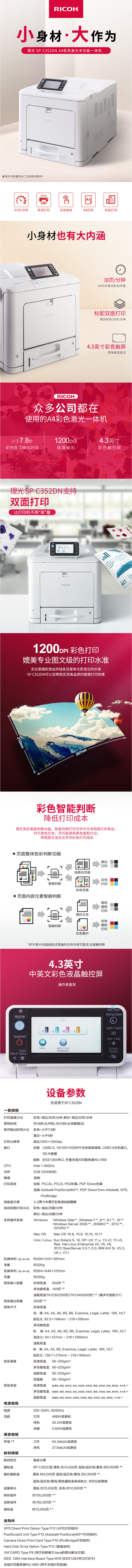 • 商品名稱:理光(Ricoh)SP C352DN A4彩色激光打印機(jī) 有線打印 自動雙面 約30頁/分鐘 適用耗材:SP C352C型粉盒