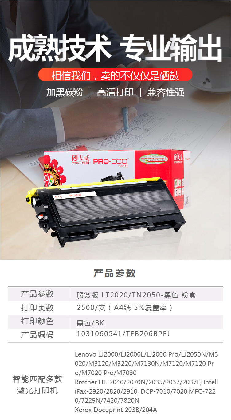 - 商品名稱:立信 LT2020/TN2050 粉盒 天威立信裝(TFB206BYNJ) 2500頁 黑色 適用于Lenovo LJ2000/LJ2000L/LJ2000 Pro/LJ2050N/M3020/M3120/M3220/M7130N/M7120/M7120 Pro/M7020 Pro/M7030 Brother HL-2040/2070N/2035/2037/2037E, IntelliFax-29