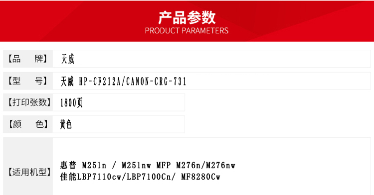 立信 CF212A 硒鼓帶芯片天威立信裝(TRHE57MYNJ) 1400頁 黃色 適用于HP LaserJet Pro 200 color Printer M251n / M251nw HP LaserJet Pro 200 color MFP M276n/M276nw Canon Laser Shot LBP7110cw Canon imageclass LBP7110cw/LBP7100Cn