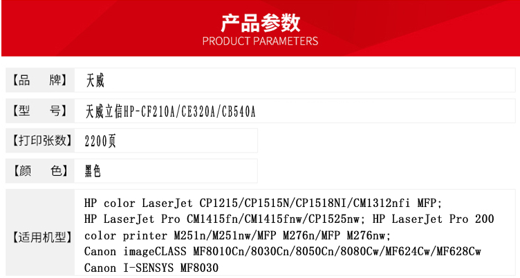 - 商品名稱:立信 CF210A 硒鼓帶芯片 天威立信裝(TRHE54BYNJ) 2200頁(yè) 黑色 適用于HP LaserJet Pro 200 color Printer M251n / M251nw HP LaserJet Pro 200 color MFP M276n/M276nw Canon Laser Shot LBP7110cw Canon imageclass LBP7110cw/LBP7100C
