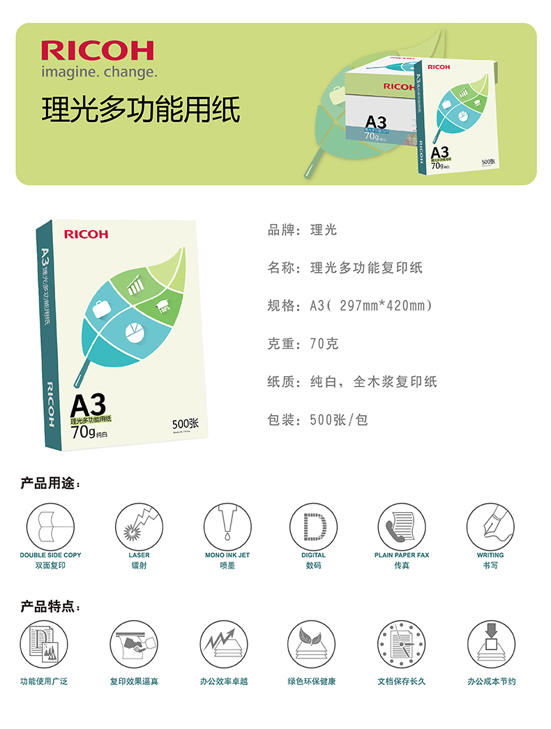 • 商品名稱:理光(Ricoh)70g A3 復(fù)印紙 多功能用紙 500張/包 4包1箱