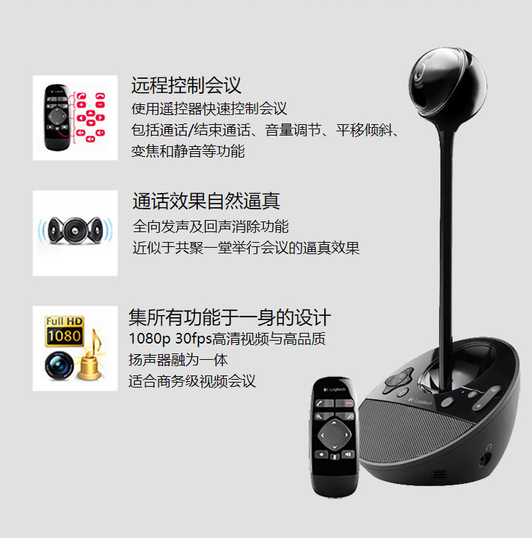 • 商品名稱(chēng):羅技(Logitech)BCC950 商務(wù)高清視頻會(huì)議攝像頭 黑色