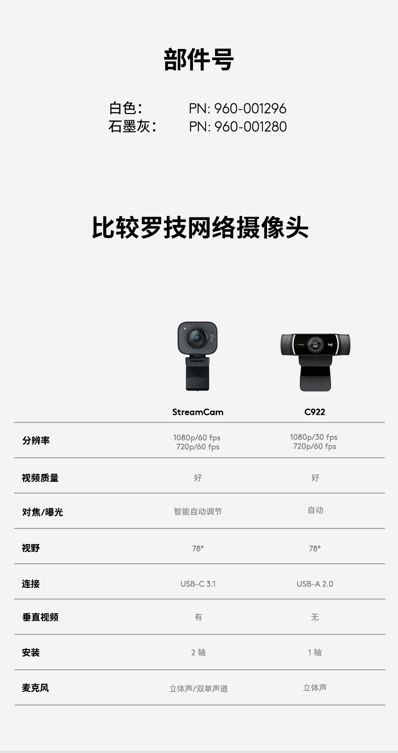 • 商品名稱:羅技(Logitech)StreamCam直播攝像頭 黑色