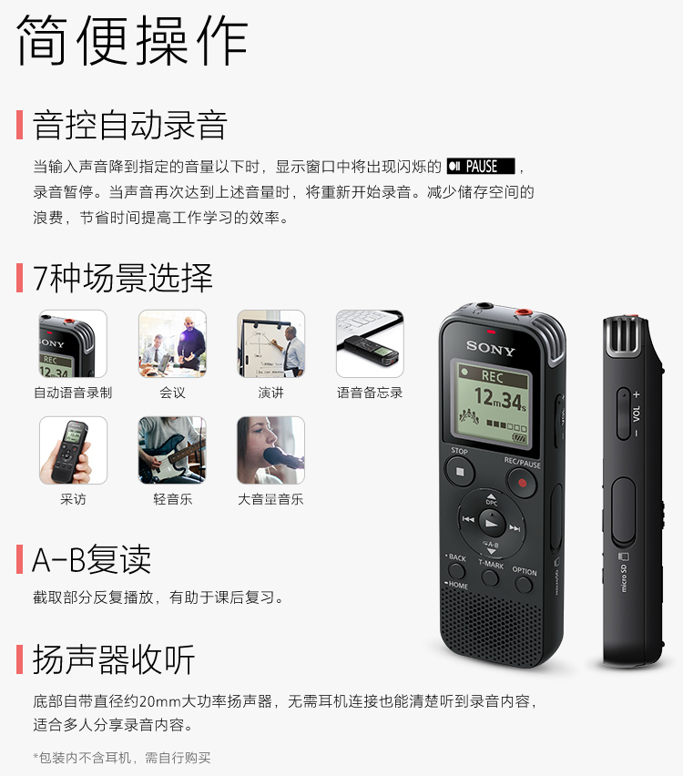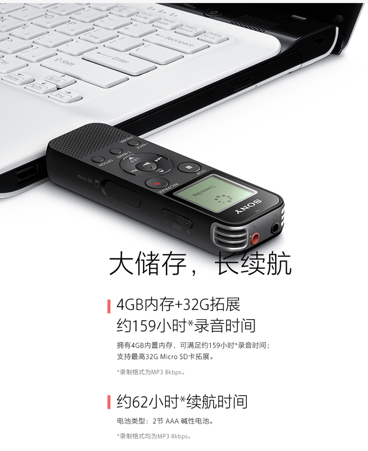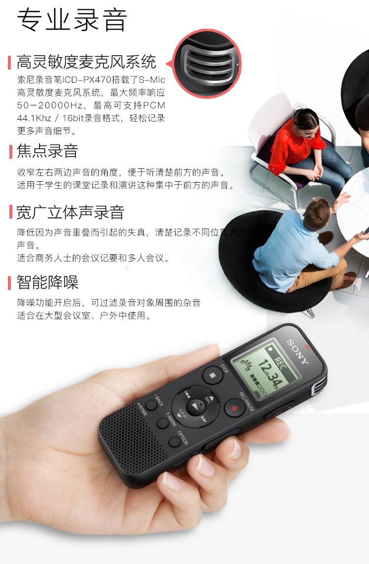 • 商品名稱:索尼(SONY)錄音筆ICD-PX470 4GB支持PCM線性錄音 便攜式學(xué)習(xí)商務(wù)采訪 專業(yè)大直徑揚(yáng)聲器